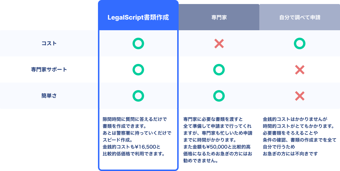 費用は書類発行代金の1万6500円(税込)と、警察署に支払う手数料1万9000円のみ。